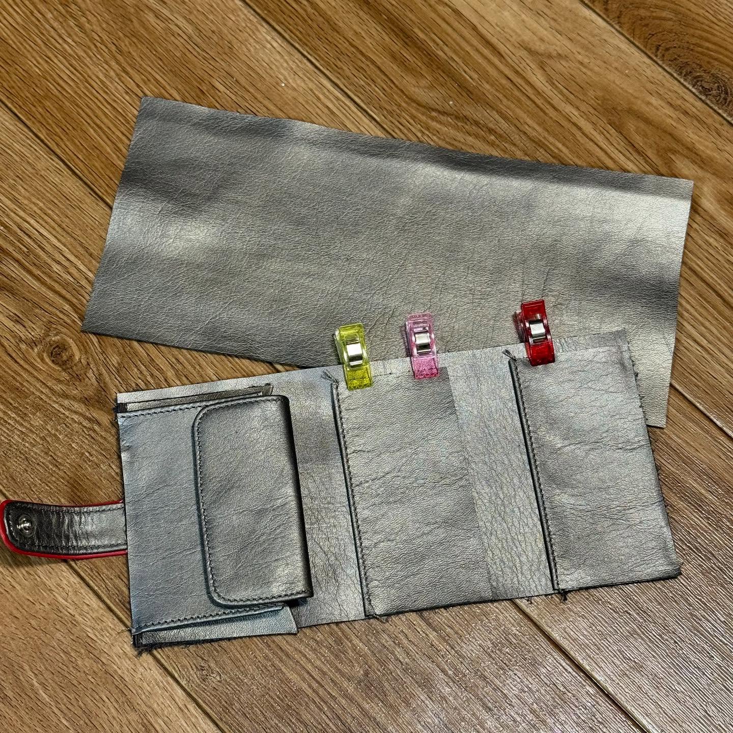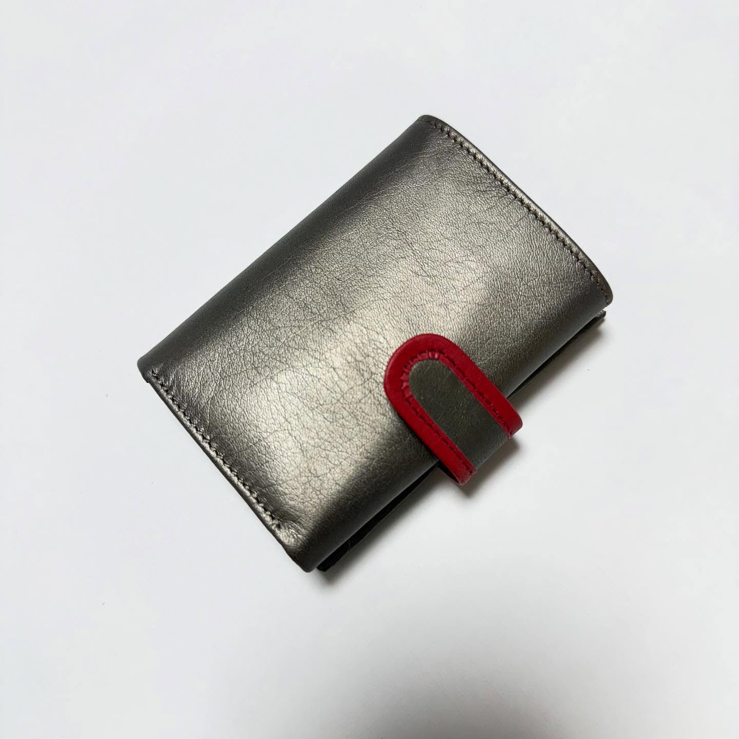オリジナルオーダーメイドの三つ折り財布を制作中。3枚目の写真は現在まで、本当に、大切に、トコトン使って頂いたお客様のお持ち物。使い勝手が良いという事でのご注文。赤い革をポイントにした、シルバー系の牛革です。またまた随分お待ち頂きながらももうすぐ仕上がる予定でございます。いつも有難うございます#オーダーメイド #財布#三つ折り財布#オリジナルデザイン #牛革 #シルバー革 – Instagram